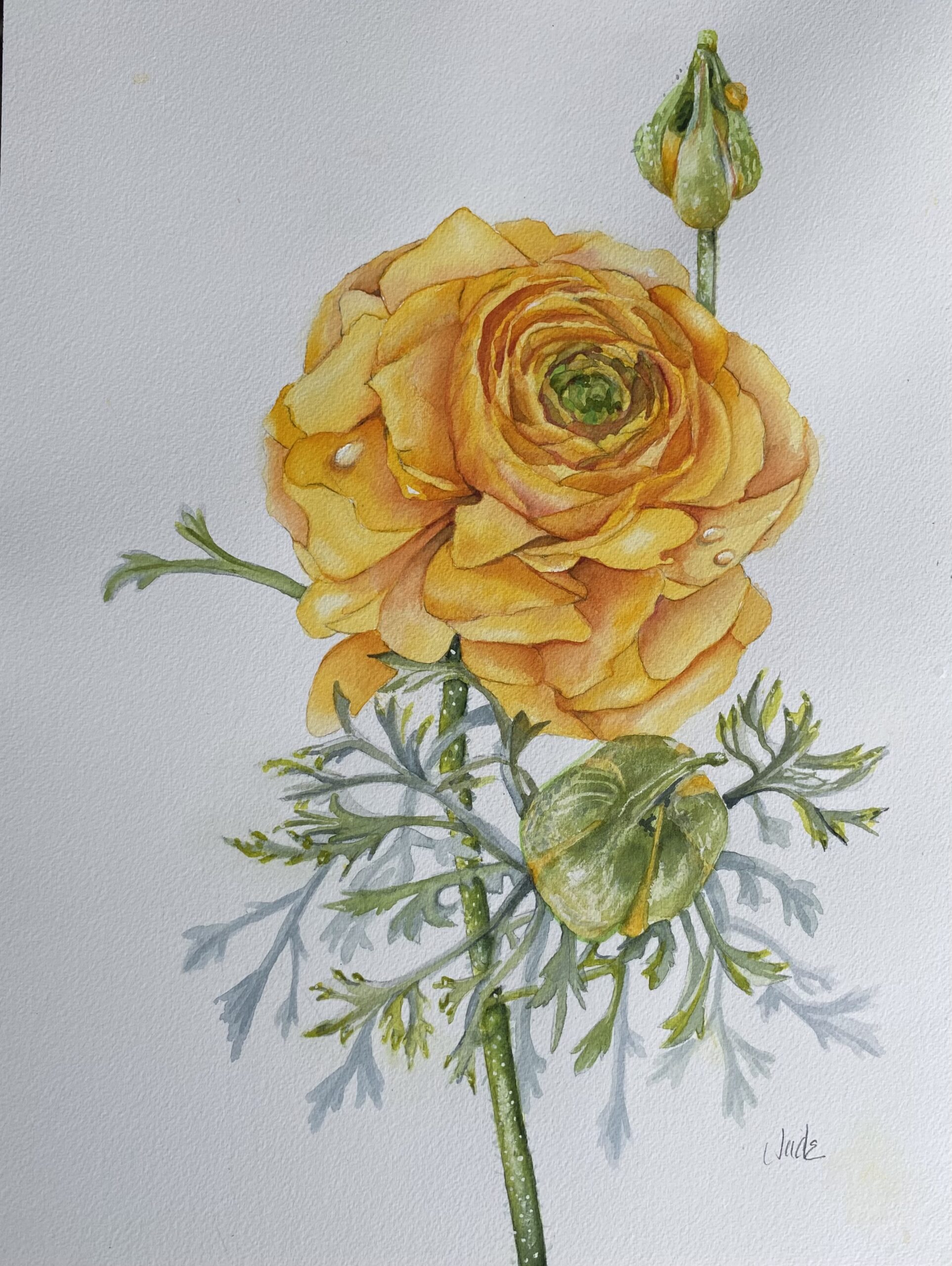 “Yellow Ranunculus”, fine watercolour original on Arches 140lb.Cold press